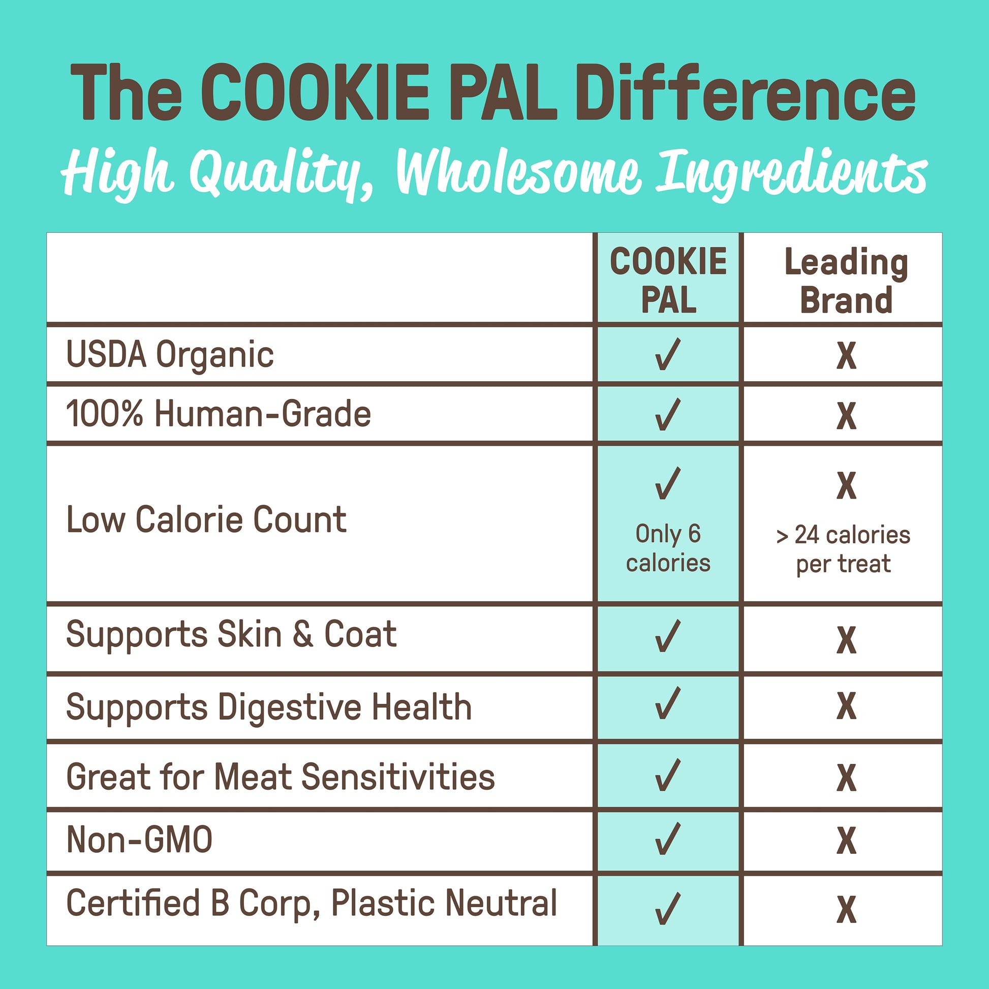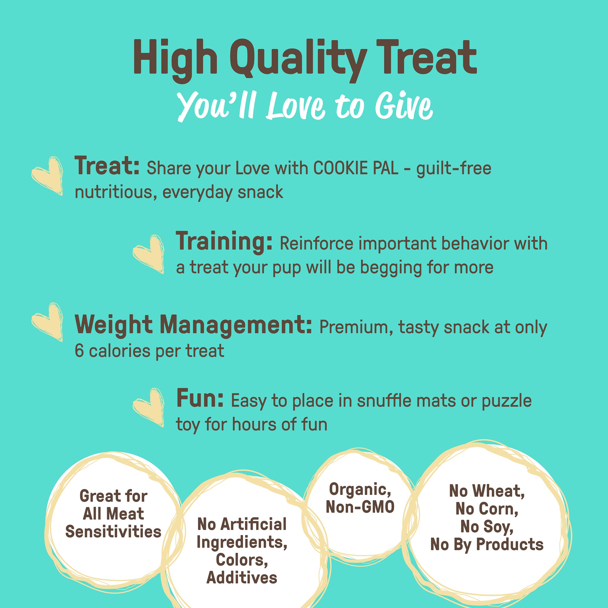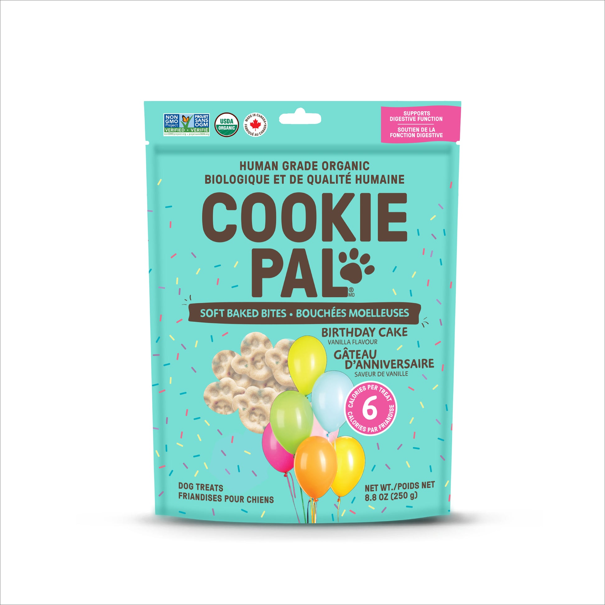Celebrate your pup with COOKIE PAL’s Birthday Cake Soft Baked Bites — a festive vanilla treat made with human grade, organic ingredients. Each soft bite has just 6 calories, making them ideal for training, weight-conscious pups, or seniors who prefer an easy-to-chew texture.