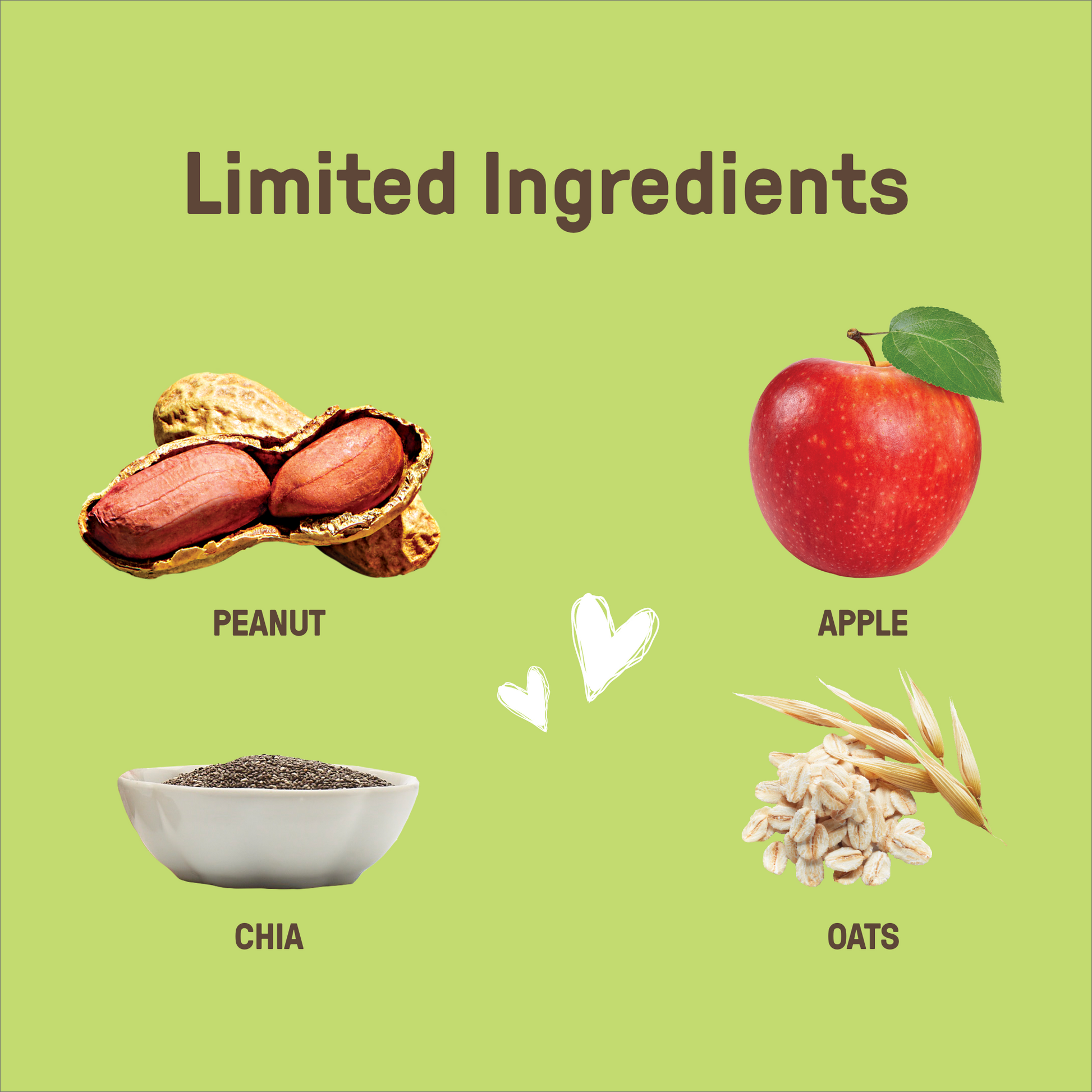Organic oat flour, organic glycerin, organic tapioca maltodextrin fibre, organic brown rice syrup, organic peanut butter, organic apple powder, organic chia powder, organic natural flavour, organic sunflower lecithin.