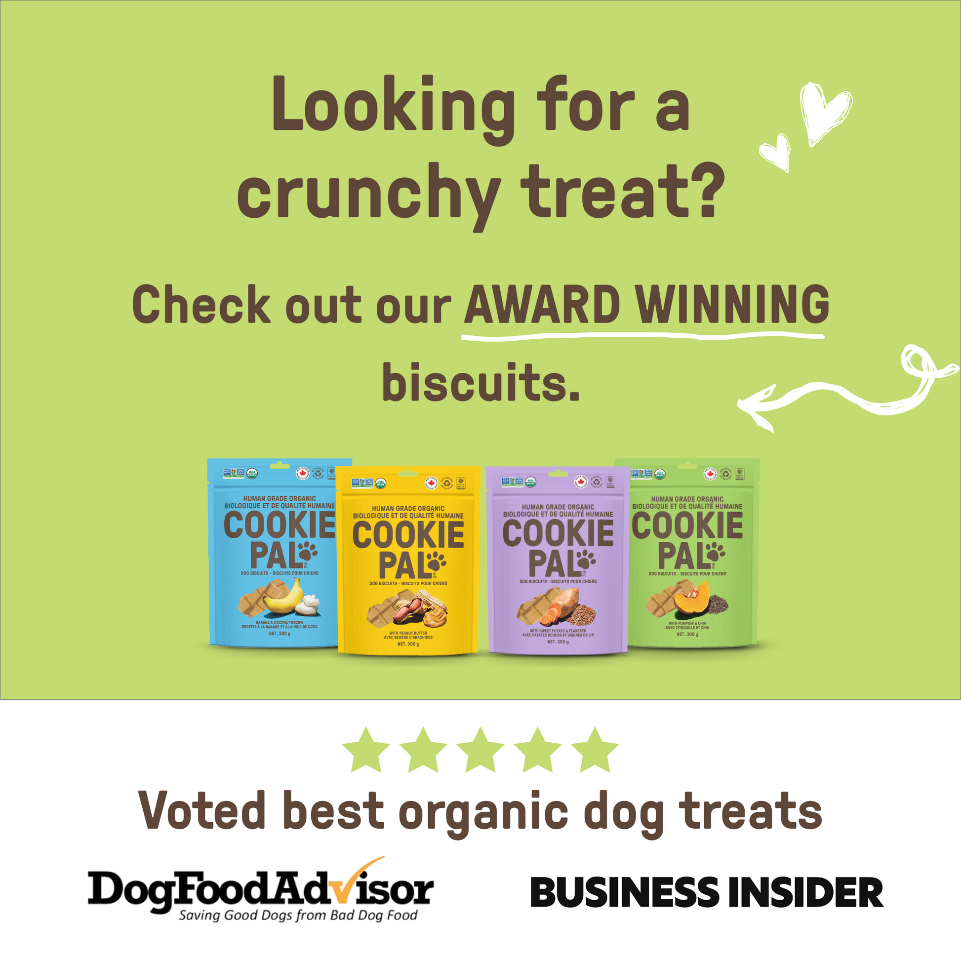 My dog’s usually not a huge fan of treats that aren’t meat-flavoured, so I was a little sceptical when I found these on sale but I picked them up anyway. He’s a huge fan! He loves both of the soft-baked flavours, and they’re soft enough to break up into 3-4 pieces to use as training treats.