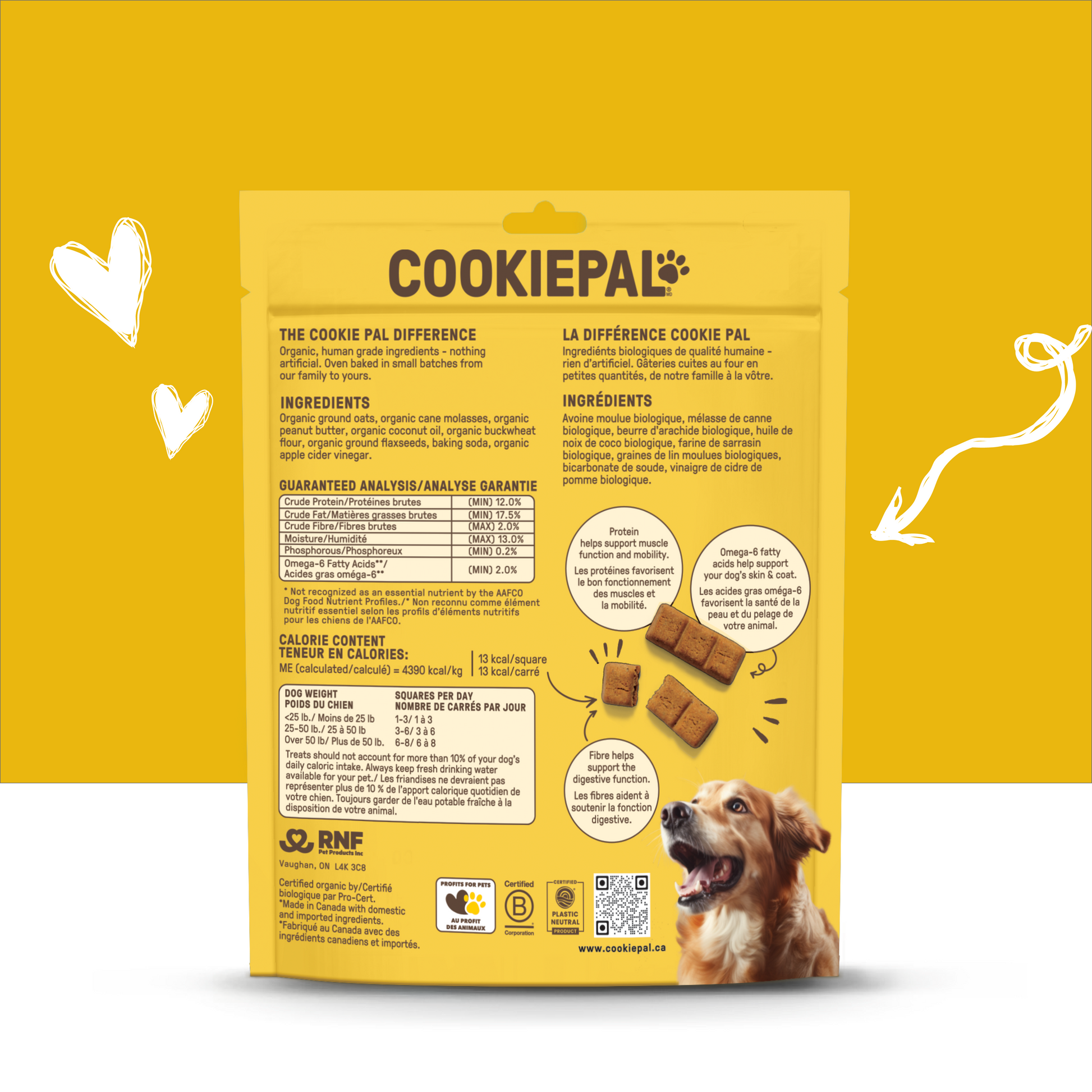 I cannot rave enough about the joy Cookie Pal has brought to our household. It goes without saying that our 4-year-old lab puppy goes ballistic whenever she senses the possibility of a Cookie Pal treat. Her favourite is the sweet potato one, but I love the smell of the peanut butter. I have to admit that I stood around with fellow dog owners one morning, and we all tasted the treats (because they are human-grade, after all). Even the humans gave the cookies a thumbs up to the extent some of the puppies missed out that morning.